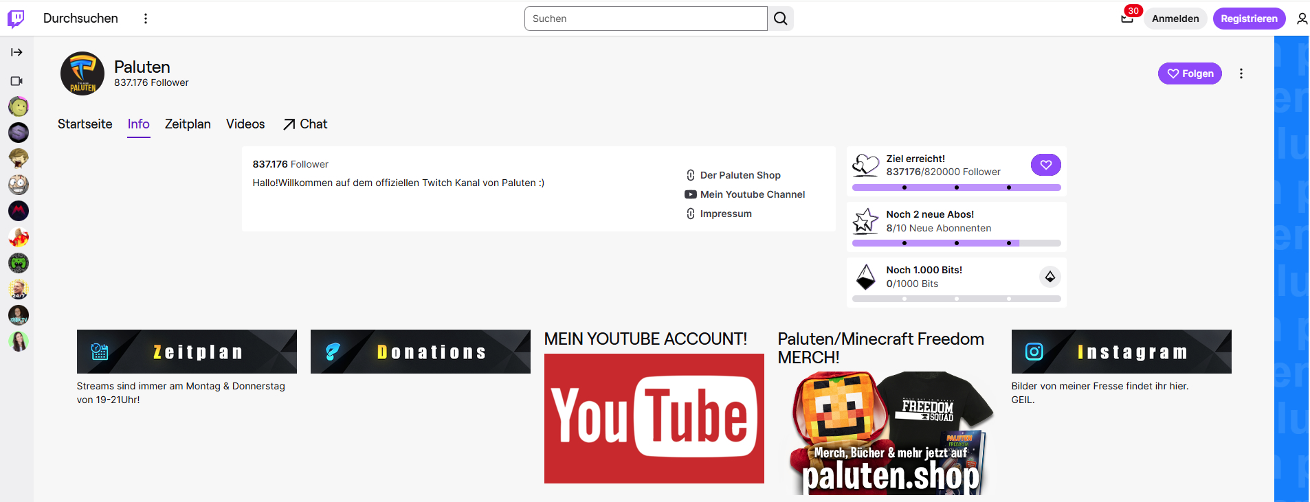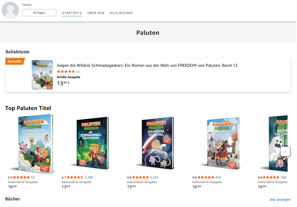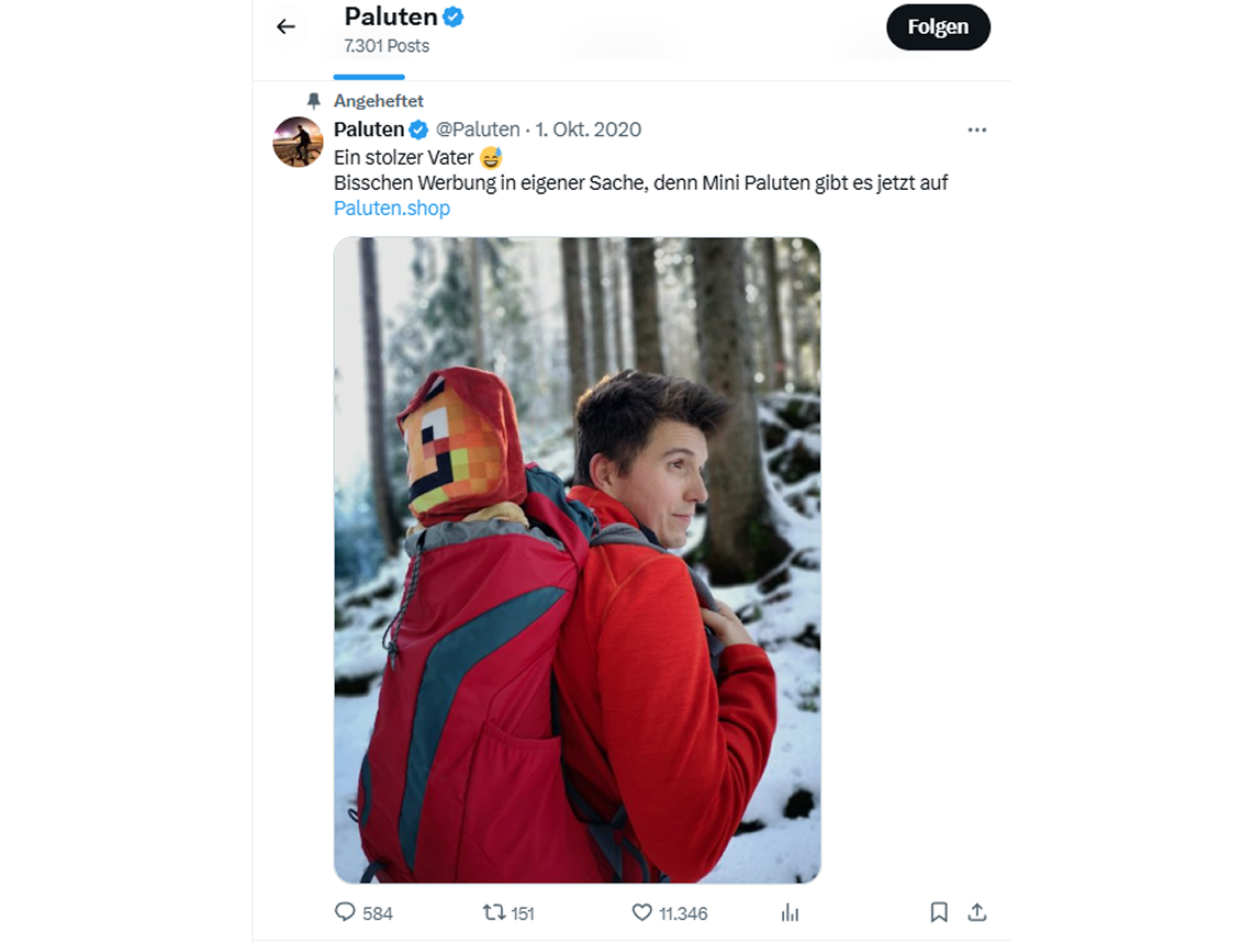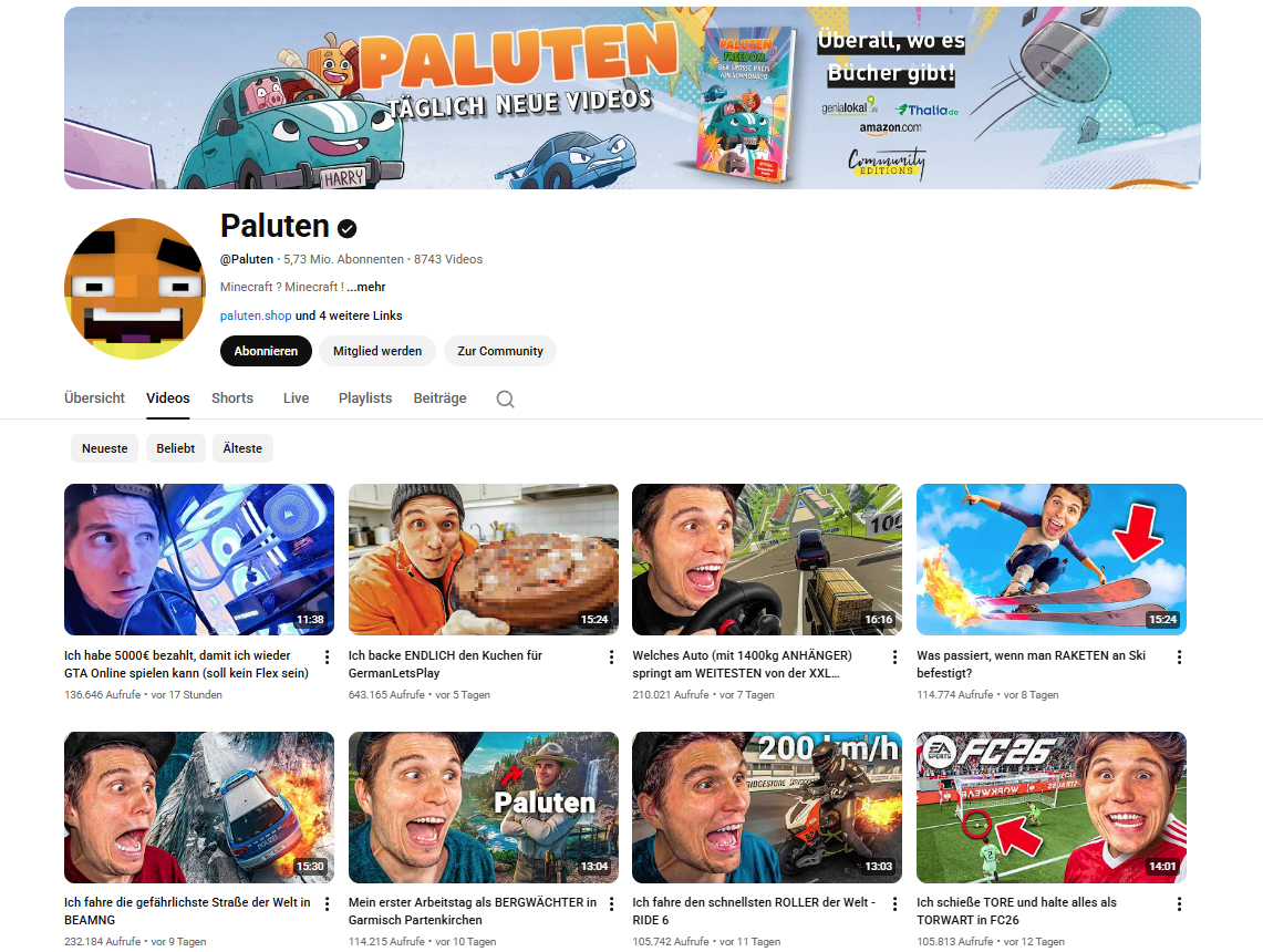 Paluten heißt im wahren Leben Patrick Mayer. Er gehört zu den bekanntesten Gaming-YouTubern im deutschsprachigen Raum. Besonders erfolgreich ist seine Minecraft-Reihe „Freedom“. Die Geschichte dieser Serie wurde so beliebt, dass daraus mehrere Bücher entstanden sind. Neben seinen Videos und Büchern verkauft Paluten auch eigene Fanartikel wie Kleidung oder Plüschtiere in seinem Online-Shop.